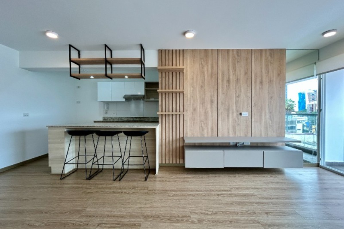 Este departamento ha sido diseñado con lujo y estilo en mente, con detalles como luminarias LED, ventanas anti-ruido con rollers instalados, y baños con muebles flotantes y puertas de ducha de vidrio templado.
