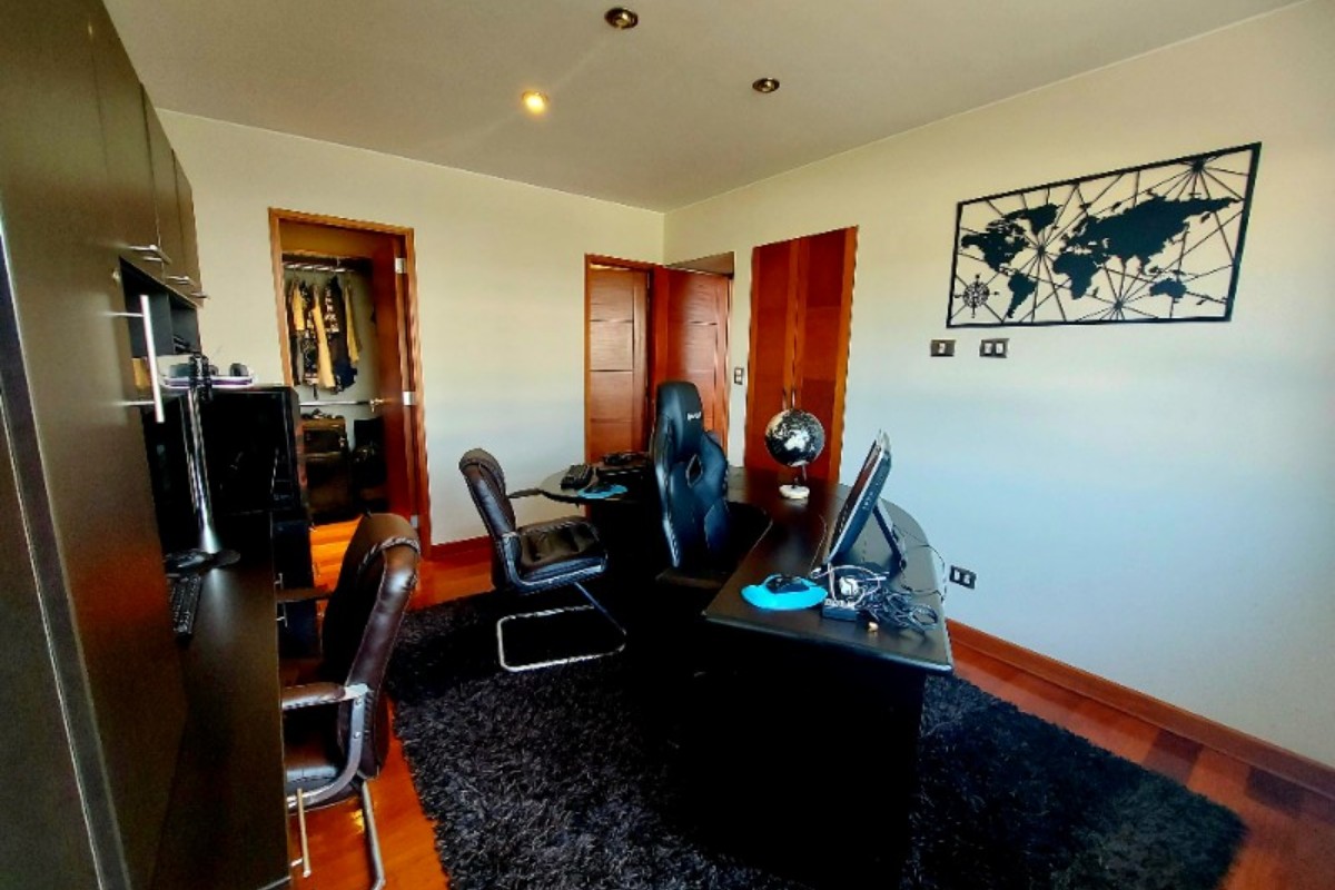 Este penthouse viene acompañado de dos cómodas cocheras paralelas y un práctico depósito para tus pertenencias. Además, el costo de mantenimiento es de tan solo 550 soles, brindándote tranquilidad y facilidad en tu día a día.